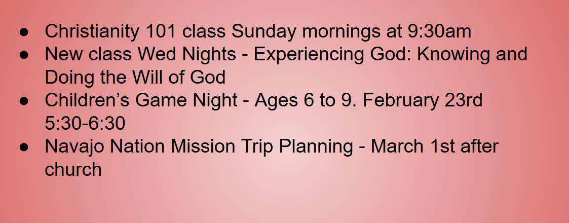 Wednesday Children’s Ministry at 6 pm
