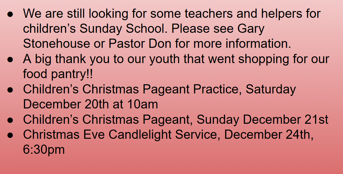 Tuesday Homeschoolers Bible Classes 10 am (Children) 11:30 am (Youth) – not too late to join